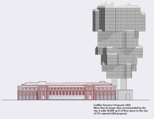 Here is an elevation of the new proposal, even larger than the last office tower.